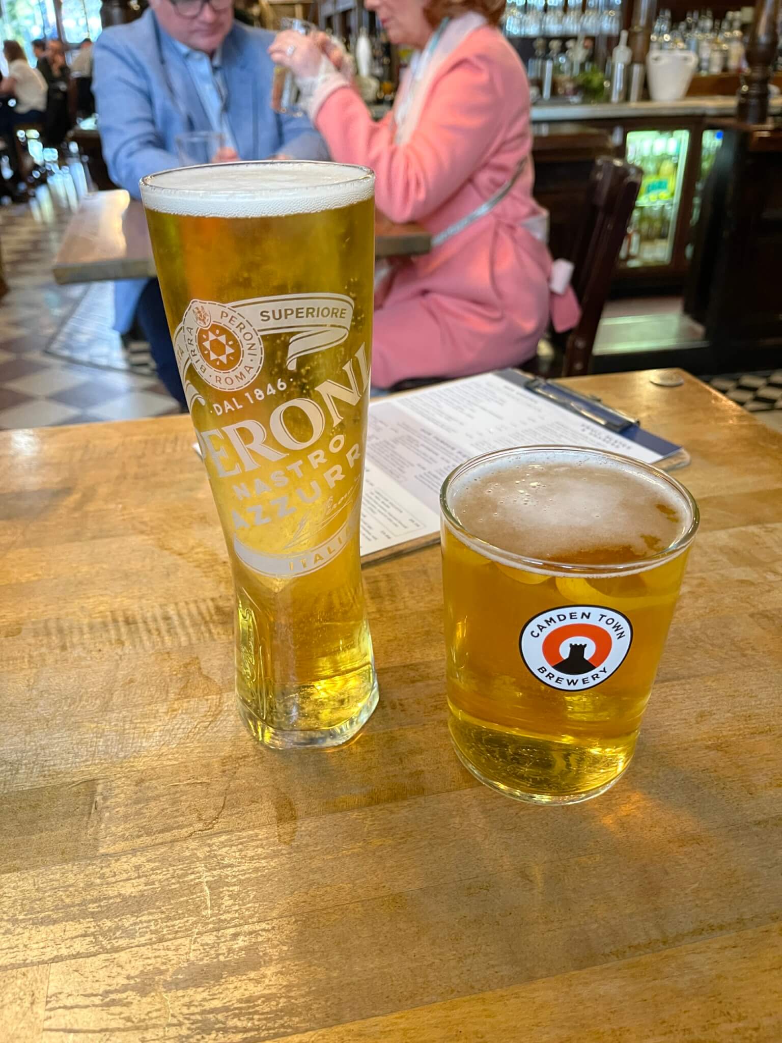 Wieder fit, treten wir den Endspurt zur Tube an. Es sind es nur ein paar Meter bis Green Park Station und es geht zurück ins Hotel. Schnell zum CoOp und was fürs Zimmer gekauft. Ach, ein Absacker geht noch. Die kurze Strecke zum Lucas Arms ist noch drin. Ein paar Bier und Chips (diesmal keine Pommes) später ist „last Order“ und die Glocke läutet. Schnell an die Theke und was bestellt, danach gibt es nämlich nichts mehr. Dann müssen wir auch raus und so endet der erste Tag in London.