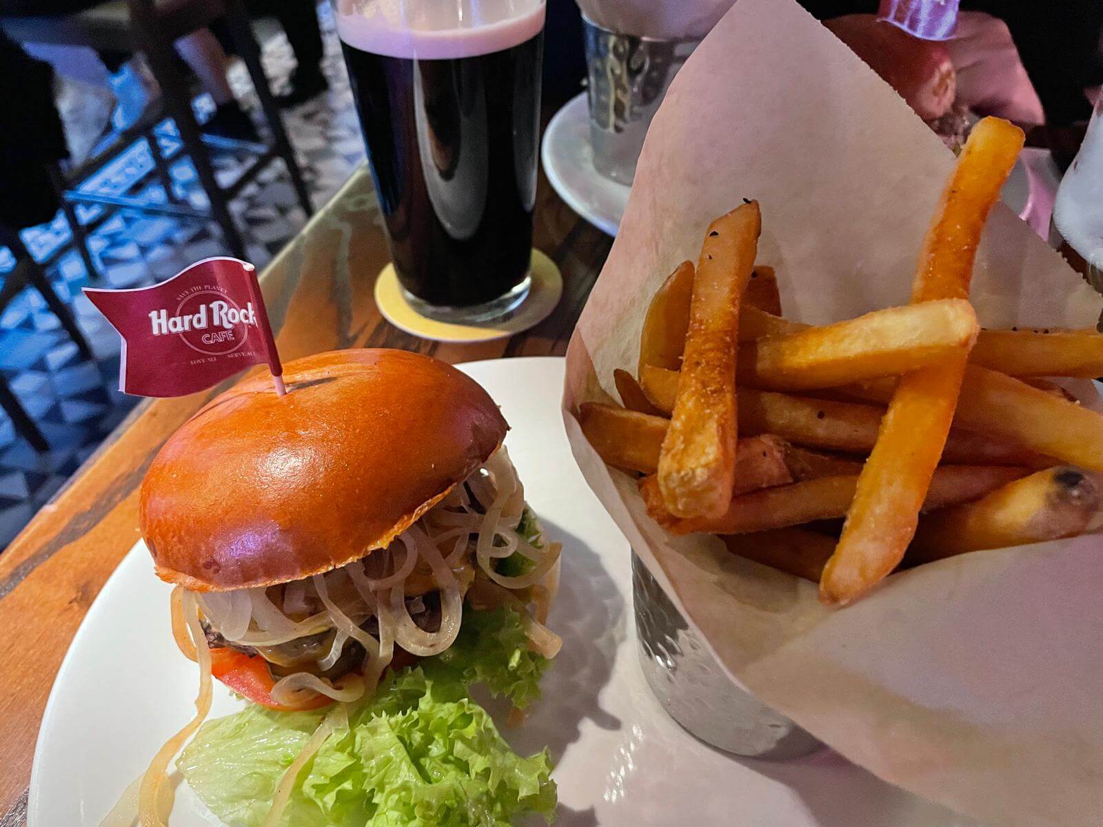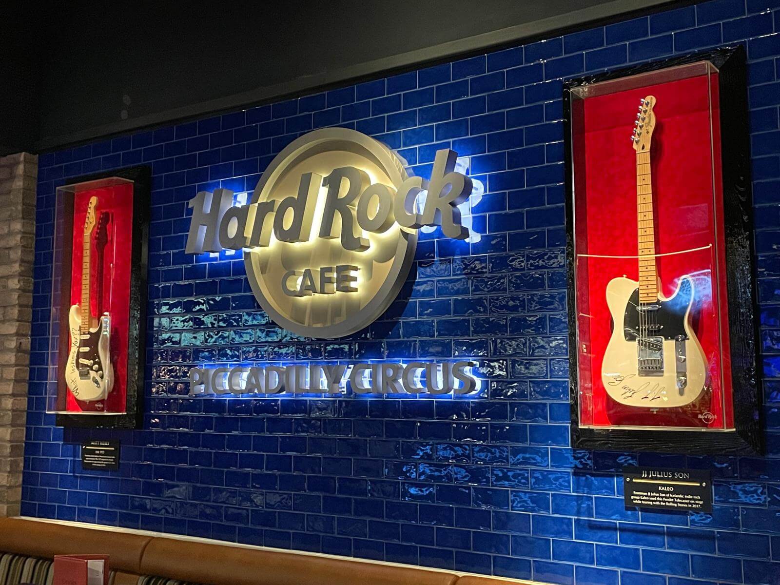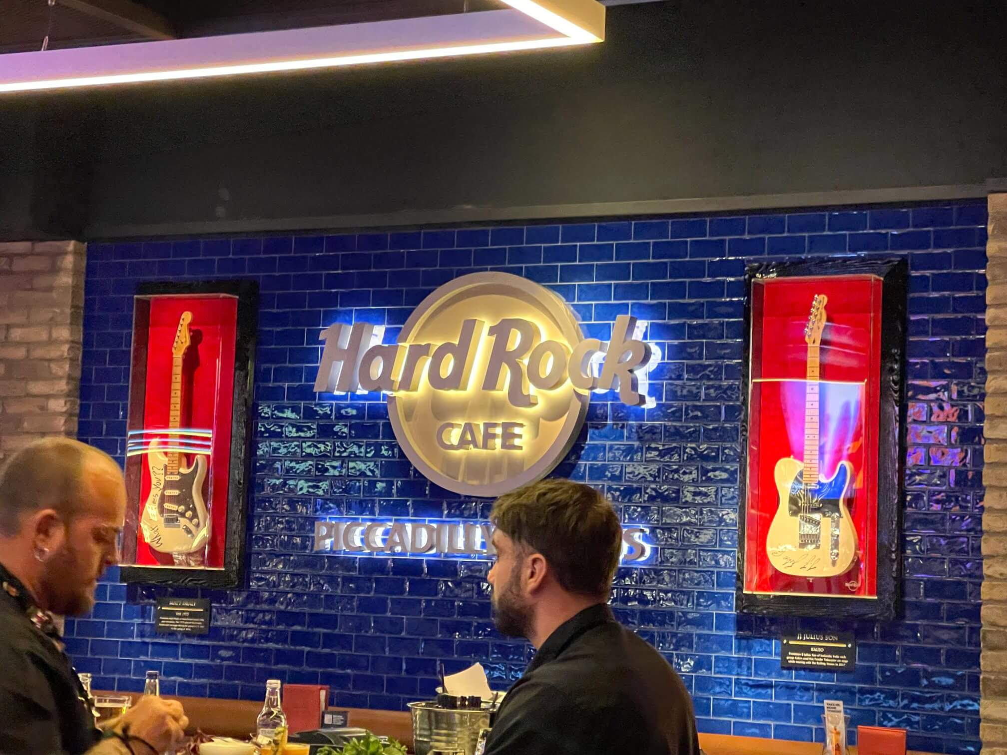 Kalt und windig ist es und Zeit was zu essen. Da ist das Hard Rock Cafe am Piccadilly Circus das Richtige auf ein Burger und Bier.