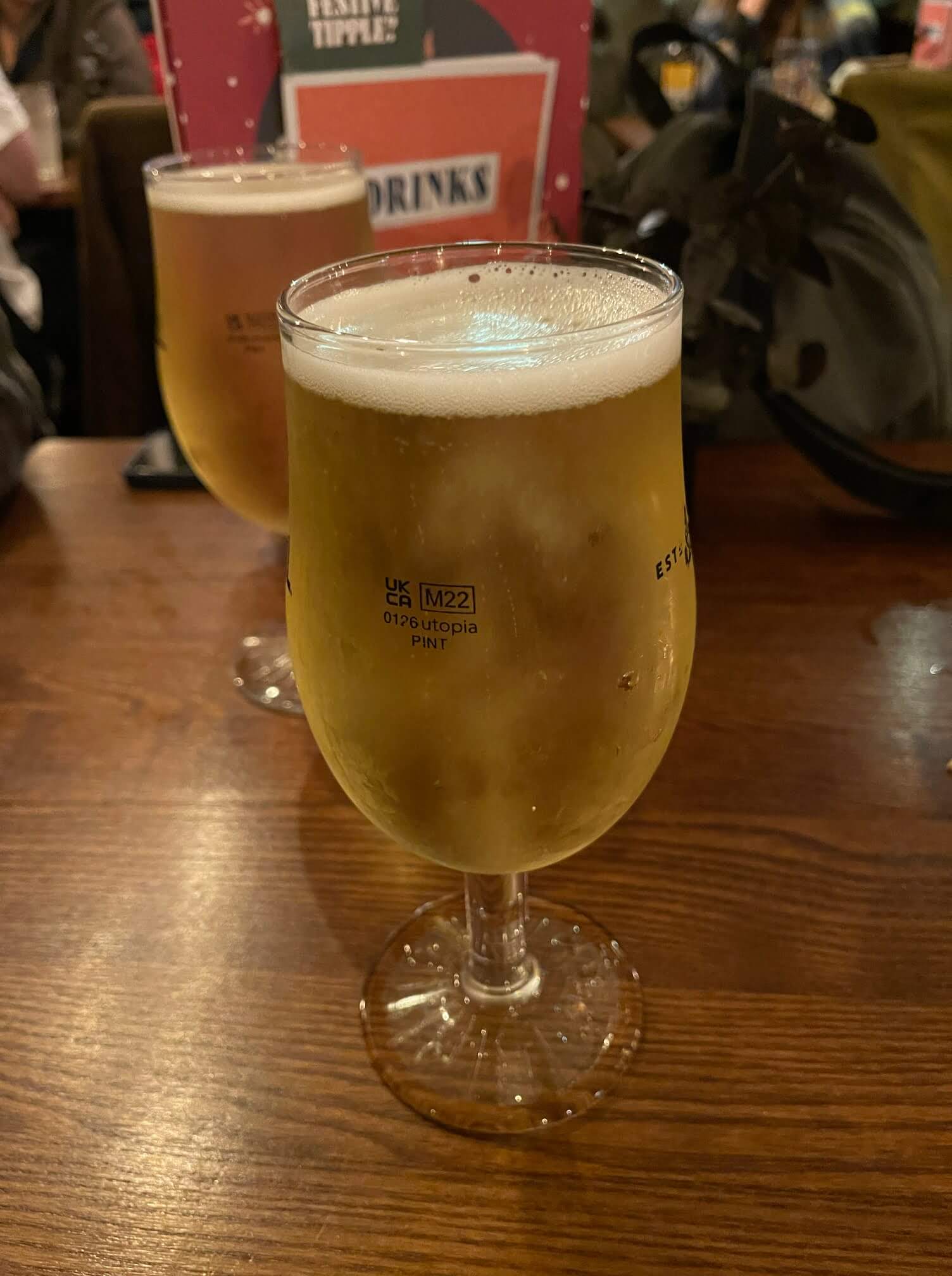 Der bis jetzt günstige und spannendsten Glühwein. Wirklich würzig nach Ingwer und Zimt. Leider macht der schon um 20:00 Uhr zu und wir werden immer wieder gebeten zu gehen, dabei sitzen wir gerade so gut. Laufen wir noch etwas durch die Umgebung. Na gut, dann auf zum Pub auf eine oder zwei Bier.