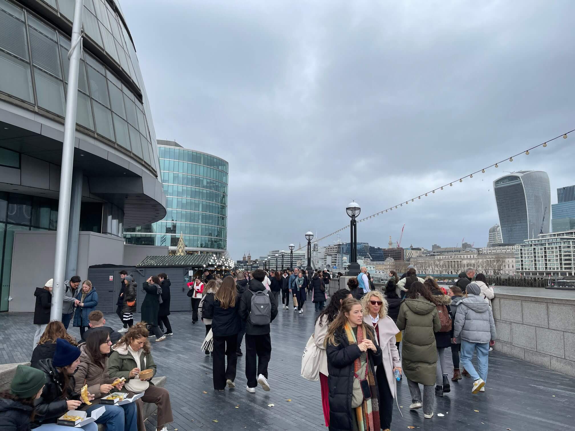 Na, hier ist nichts los. Absolut nichts. Zurück in die City. Das wird noch spaßig. London, Wochenende und Vorweihnachtszeit bedeutet viele Menschen, aber das was kommt hätten wir nicht erwartet.