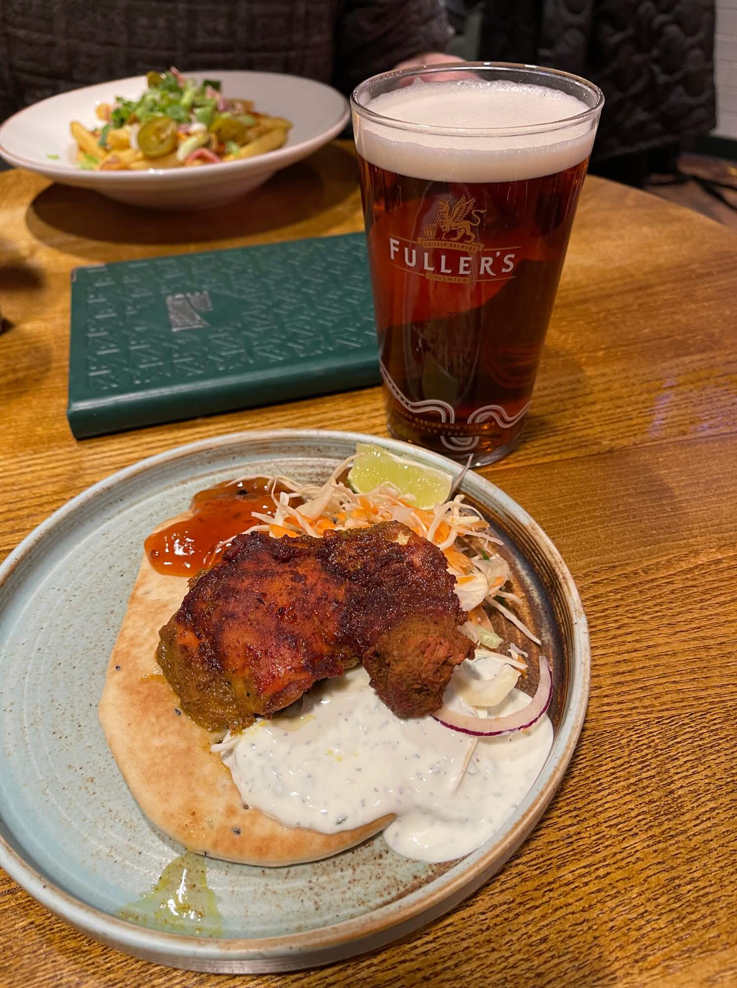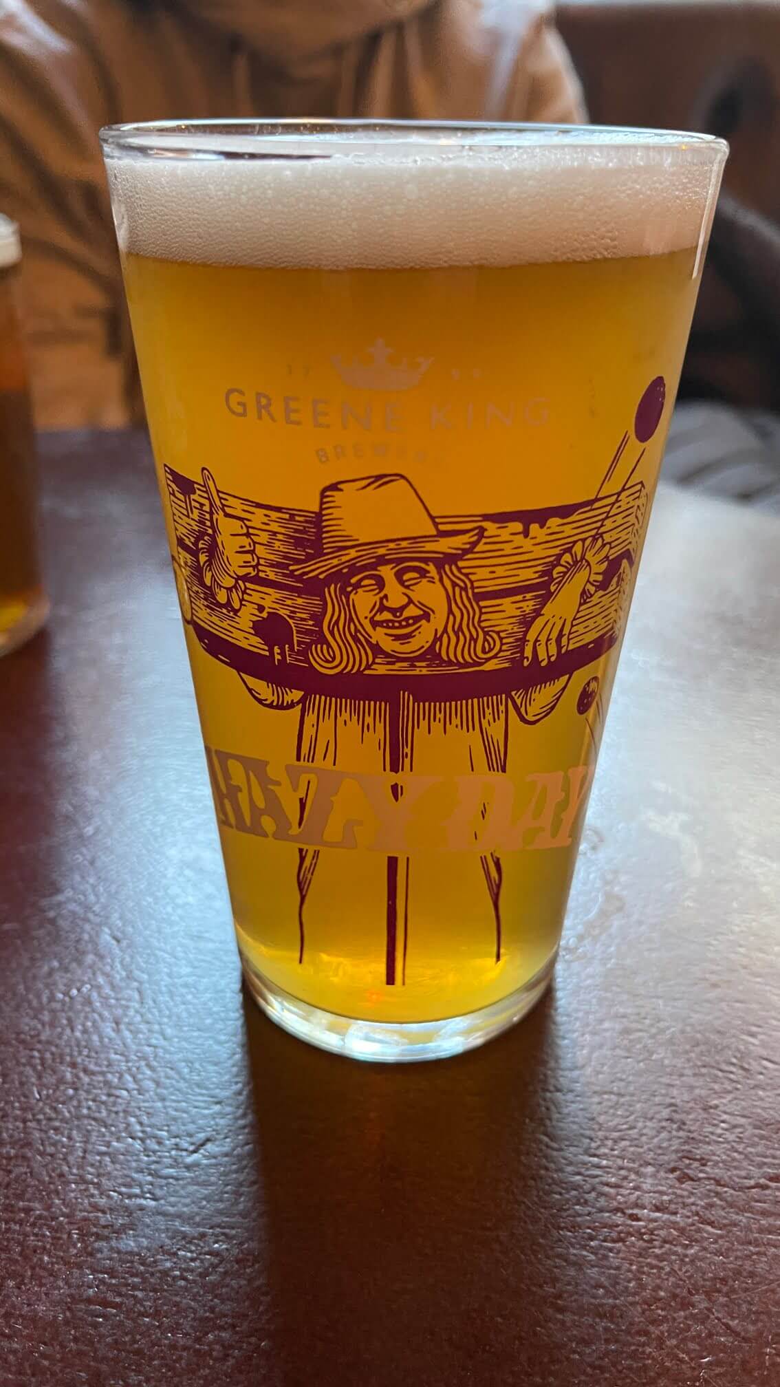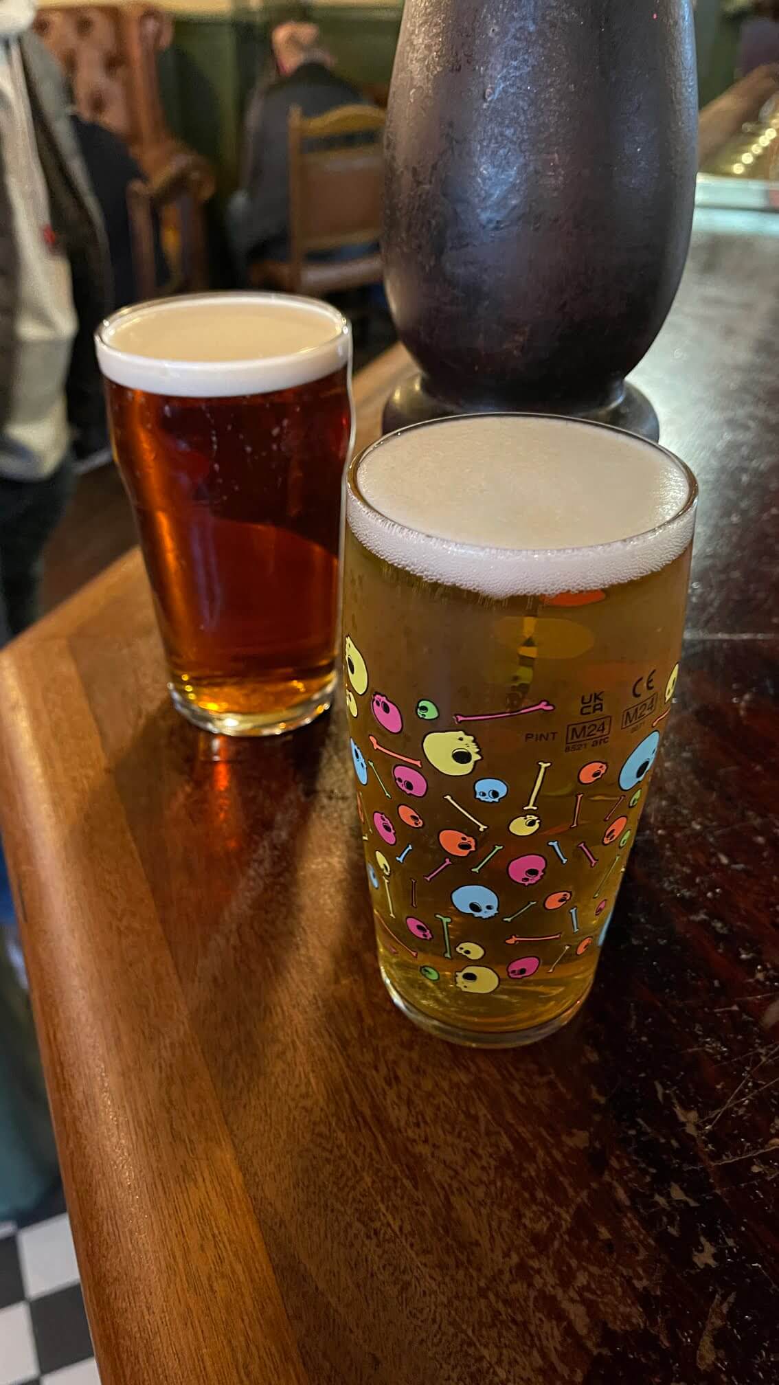 Nach dem Glühwein geht es weiter. Es ist sehr windig, also suchen wir „Schutz“ im Pub auf zwei Bier.