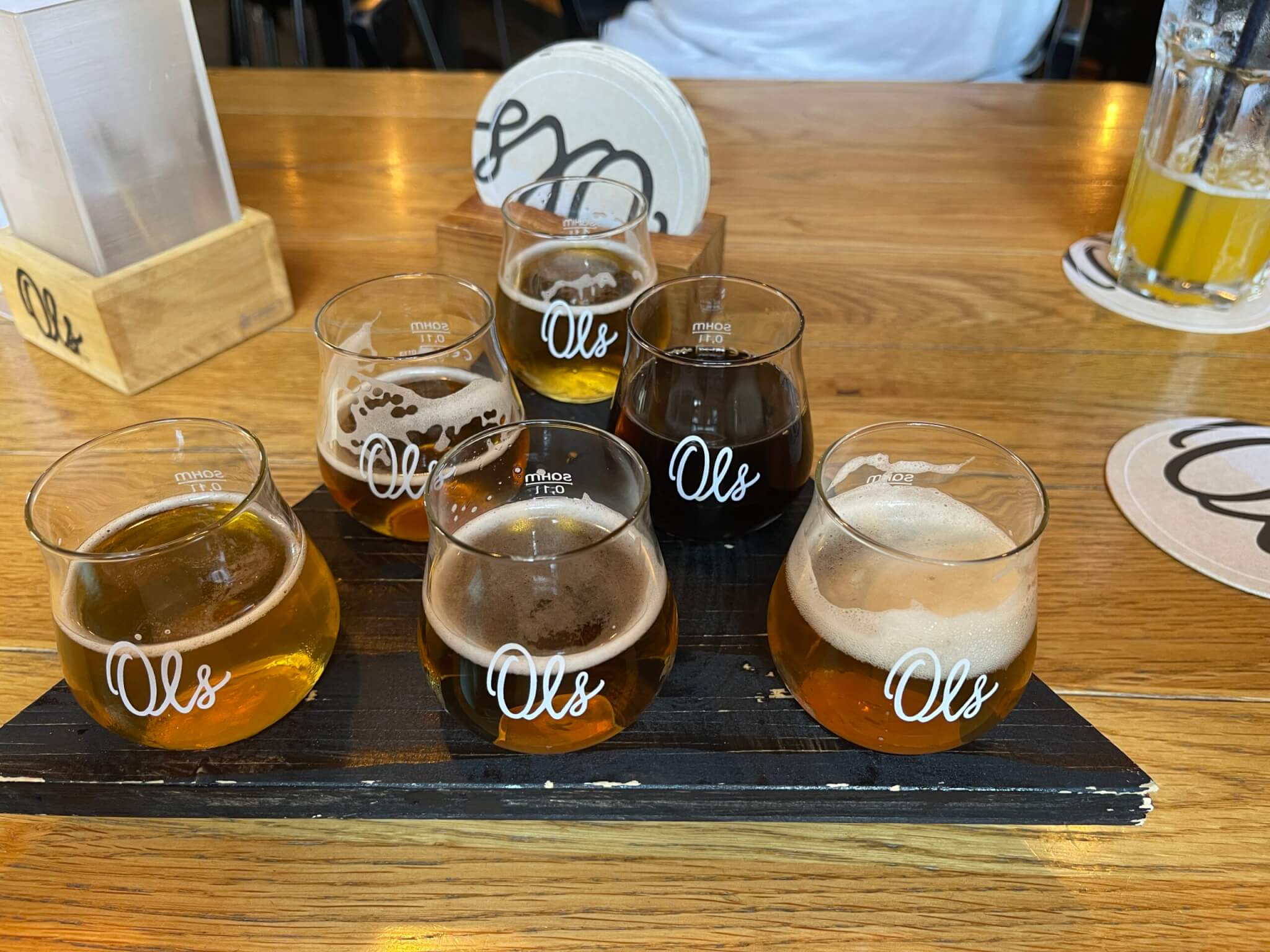 Toll, eine Bierprobe steht auf der Karte. Die werde ich natürlich probieren. Leider haben sie nichts zu Essen, außer Buffet, daher bleibt nach den 6 Sorten des Ol’s Biers und einem richtigen Glas Bier nur der Weg zum Asiaten.