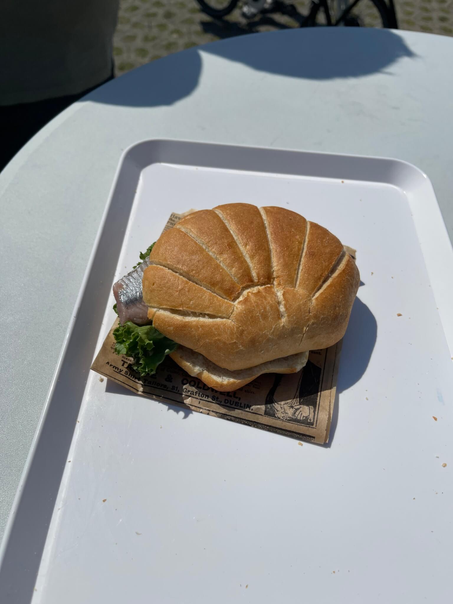 Als wir angekommen sind, sticht gleich ein Wagen mit Fischbrötchen ins Auge, da bekomme ich dann auch mein ersehntes Krabbenbrötchen (für nur 10€), die anderen nehmen klassische Fischbrötchen.