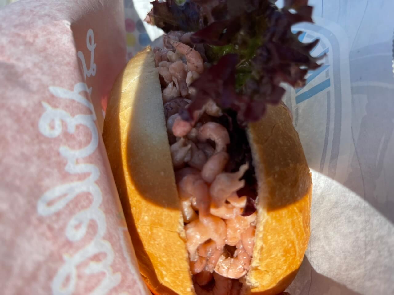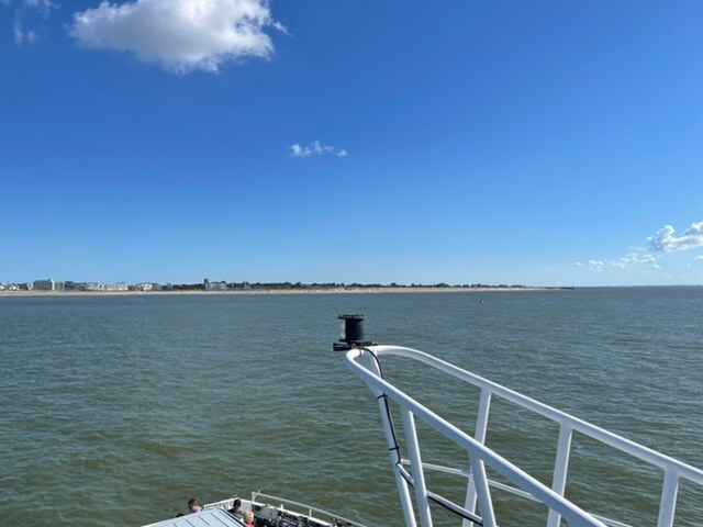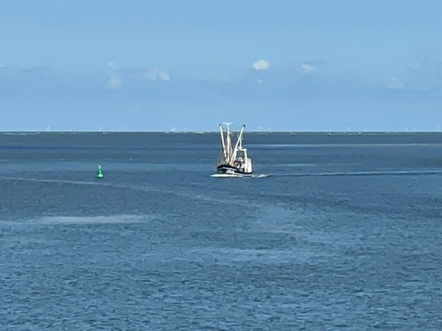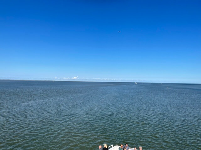 50 Minuten dauert die Überfahrt bei ruhiger See. Angekommen. Nach 2 Bier ist ein Krabbenbrötchen echt willkommen. Laufen wir zum Strand, auch die Sonne zeigt sich.