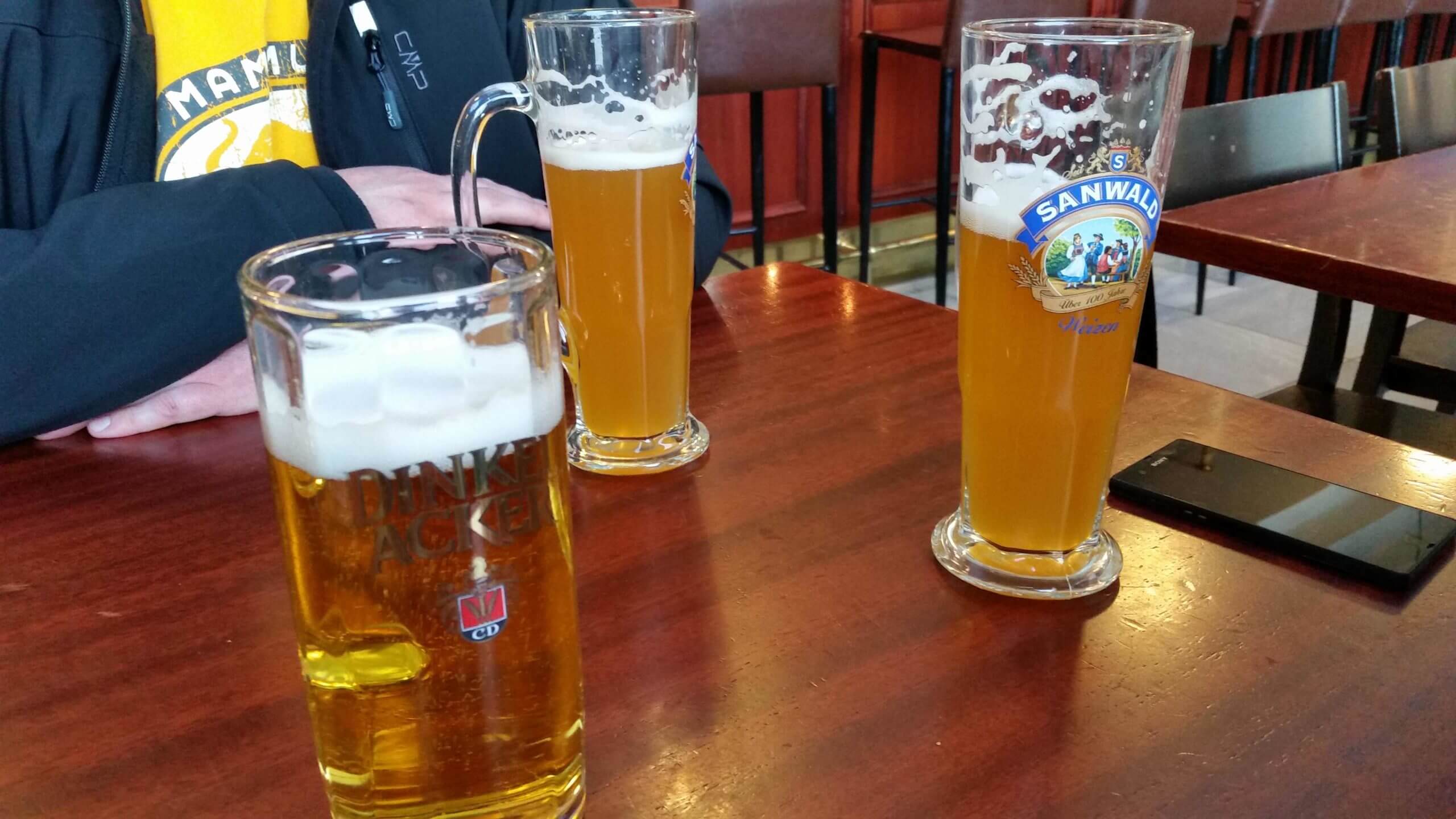 Nachdem wir die Koffer aufgegeben haben und durch die Kontrolle sind, ist noch Zeit für ein kleines Bierchen um auf die Reise anzustoßen.