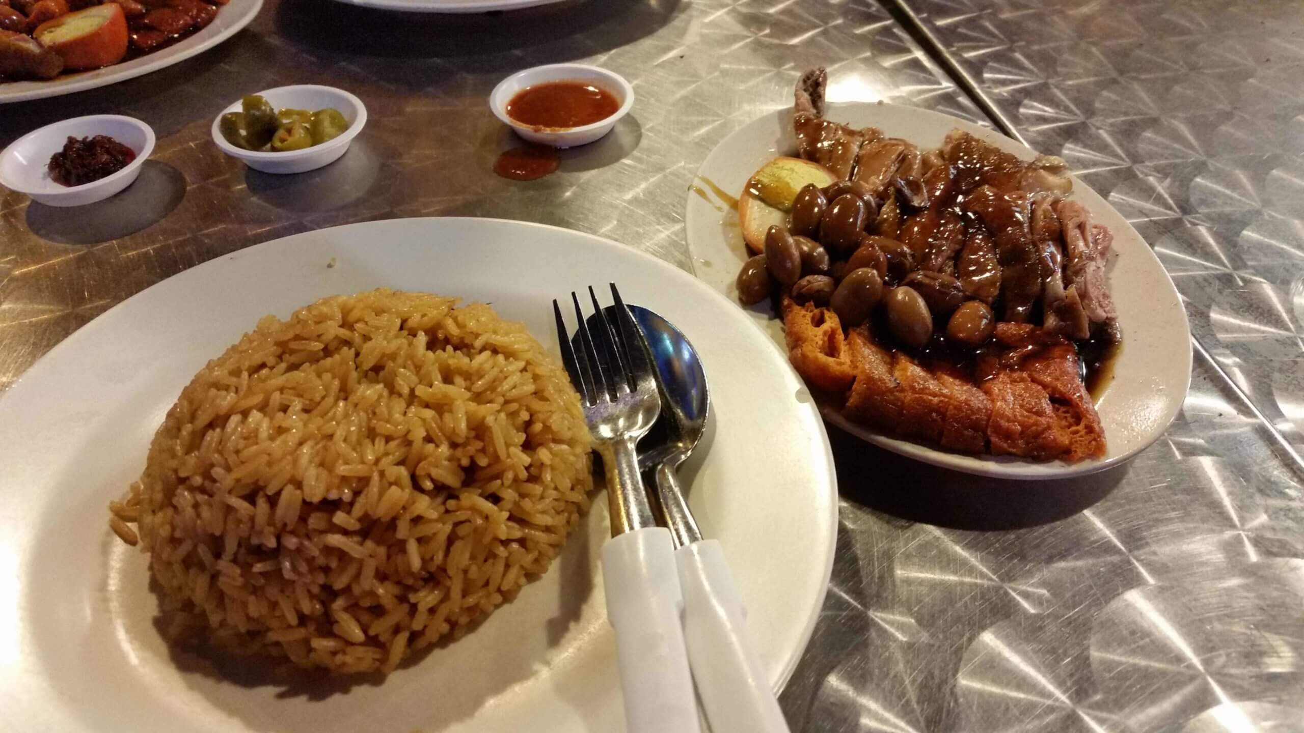 Melli war aber mutig und hat sich ein Durian Pancake gegönnt. Kurz ins Hotel um uns frisch zumachen und auf zum Essen. Der Straßen-Imbiss gleich um die Ecke wird es. Leider habe ich mich mit dem Black-Pepper-Chicken vertan und neidisch auf das Essen der Anderen gestiert was die leckeres bekommen haben.