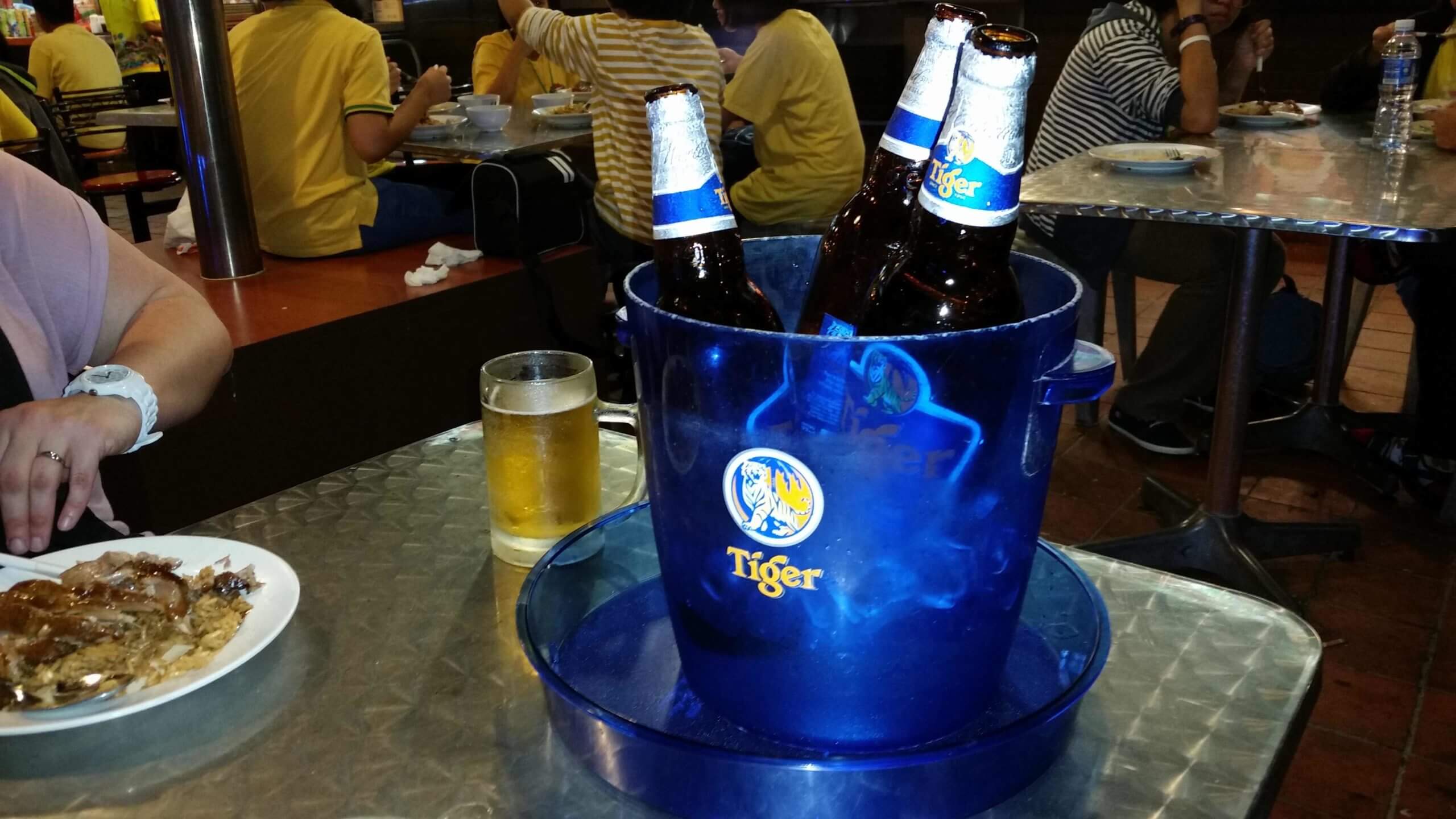 Ja, ein kleinen Foodcourt. Tiger Lilly (so nenne ich mal die Bedienung) bringt 3 Bier dazu.