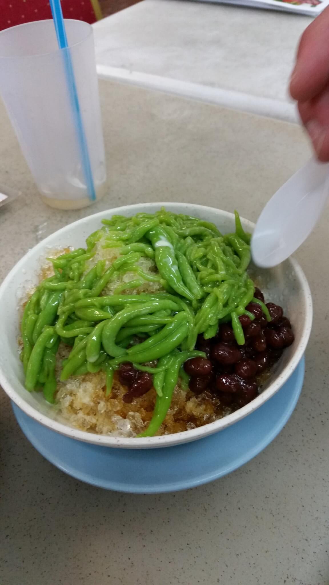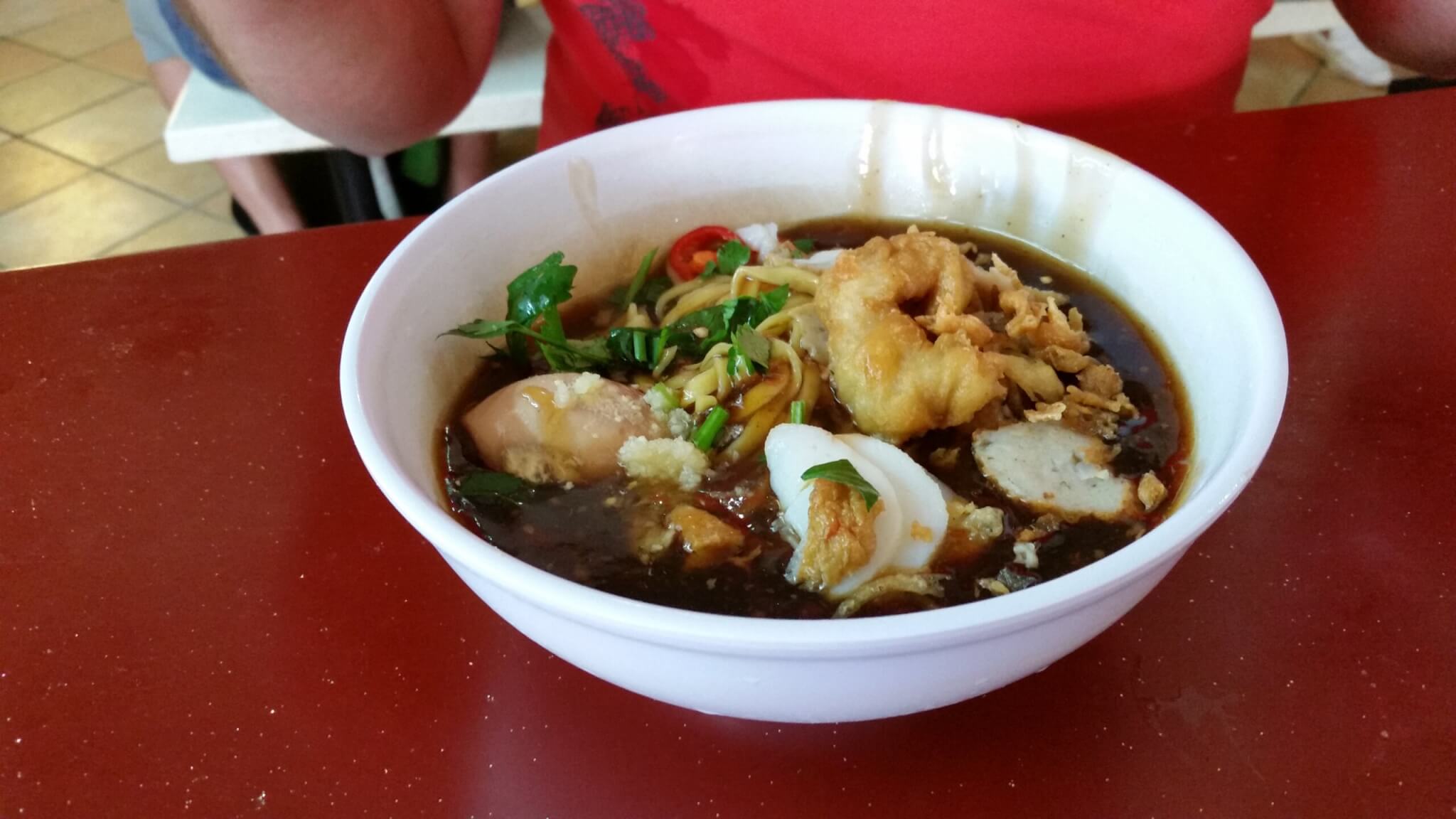 Melli war aber mutig und hat sich ein Durian Pancake gegönnt. Kurz ins Hotel um uns frisch zumachen und auf zum Essen. Der Straßen-Imbiss gleich um die Ecke wird es. Leider habe ich mich mit dem Black-Pepper-Chicken vertan und neidisch auf das Essen der Anderen gestiert was die leckeres bekommen haben.